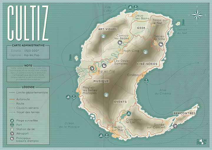 Cultiz est un média en ligne créé en 2009, et qui se définit comme un « webzine street à tendance geek ». Dans leur rubrique « Cult-iz-my-C », ils proposent à des designers, graphistes et artistes de revisiter leur logo, sans autre consigne particulière. Goum Prod s’est prêté au jeu en février 2014 (lire l’interview ici) et a réalisé cette cartographie de leur site internet.